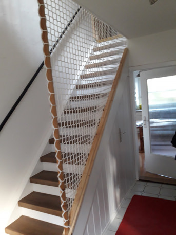 Securing the stairs in a saving space - I can 100% recommend the net in terms of design, quality and use. The processing and delivery was uncomplicated translated, original text: "Absicherung von Sparraumtreppe - das Netz kann ich in Ausführung, Qualität und Einsatz zu 100% weiterempfehlen. Die Abwicklung und Lieferung war unkompliziert"