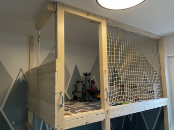 We built a play area for our son. To keep it from getting too dark, we had Safetynet365 make a safety net. The net fits very well and was also very easy and simple to install. We would definitely order a custom-made net from here again. Excellent quality! translated, original text: "Wir haben eine Spieletage für unseren Sohn gebaut. Damit diese nicht zu dunkel wird haben wir von Schutznetz24 ein Sicherheitsnetz anfertigen lassen.