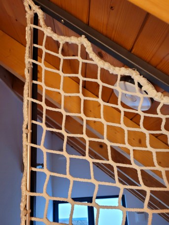 Das Netz eignet sich sehr gut als Fallschutz. Diese Lösung gefällt mir sehr viel besser als z.B. einen Zaun anzubringen.