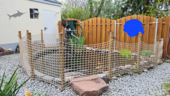 In addition, the net is not visually disturbing and the plants and fish are not affected either. translated, original text: "Wir haben ein Netz für unseren Gartenteich gesucht, damit wir diesen für kleine Kinder absichern können.