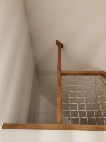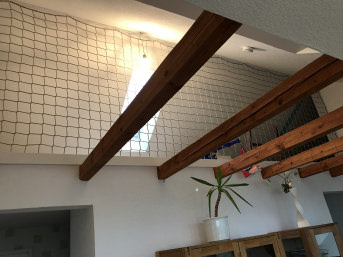We are using the net we ordered as a safety net in the open hallway over the entire height of the first floor, as we have a small child living in the house. I was very surprised at how well the net fits, as I had 'only' given the dimensions. I was a little doubtful as to whether the net would fit, as it does need a certain amount of tension. It fits perfectly! translated, original text: "Wir verwenden das georderte Netz als Sicherheitsnetz im offenen Flur über die gesamte Raumhöhe im 1. Stock, da ein Kleinkind im Haus lebt. Ich war sehr überrascht, wie gut das Netz passt, denn schließlich hatte ich ja 'nur' die Maße angegeben. Ich hatte ein wenig Zweifel, ob das Netz passen würde, da es ja doch eine gewisse Spannung braucht. Es passt perfekt!"