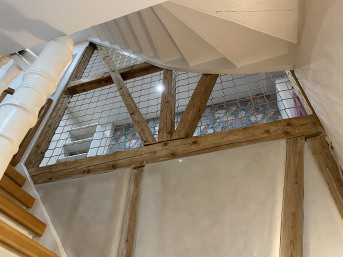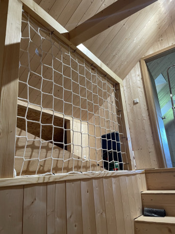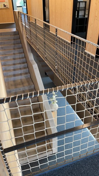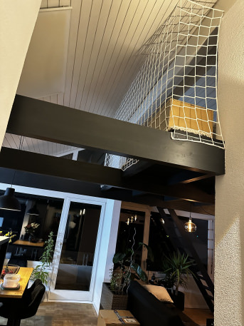 We installed the net as a fall protection for our gallery. It fits perfectly and we are very happy with the choice! We chose a mesh size of 100 x 100 mm over the entire height of the room. translated, original text: "Wir haben das Netz als Absturzsicherung unserer Galerie eingebaut. Es passt perfekt und wir sind sehr happy mit der Wahl! Gewählt haben wir Maschenweite 100 x 100 mm über die ganze Raumhöhe."
