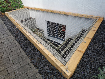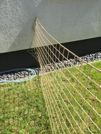We converted the net into a safety net so that our son doesn't fall into the atrium. We built beams around the atrium and stretched the net over them so that it catches him if he falls in. Affordable alternative. Looks good in our garden. We are very happy with our choice. translated, original text: "Wir haben das Netz zu einem Auffangnetz umfunktioniert,