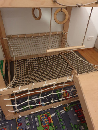 The safety net is used in our daycare as a fall protection and safety net! The quality is super stable and the workmanship is also good. The net also gives the corner a very special atmosphere.