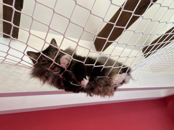 We ordered a custom-made safety net because we have open beams that we want our cats to be able to use to balance without falling into our dining room table.