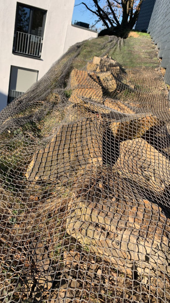 The net we bought was not used to secure the slope, but to protect our cars parked under the carport from falling pieces of firewood. We are very happy and glad to have found a simple but very effective solution....Thank you