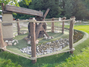 We use the net on our adventure golf course "Schnucken-Golf" in Schneverdingen in the Lüneburg Heath. We have many decorative elements on our course, including a mill wheel that is actually moving. To ensure that no one can put their arms or head in the wrong place, the mill wheel is surrounded by a decorative net. translated, original text: "Wir nutzen das Netz auf unserer Adventure-Golf Anlage "Schnucken-Golf" in Schneverdingen in der Lüneburger Heide. Auf unserer Anlage haben wir viele Deko-Elemente, u.a. ein Mühlrad, das richtig in Bewegung ist. Damit hier niemand Arme oder Kopf an die falsche Stelle stecken kann, wird das Mühlrad von einem dekorativen Netz umgeben."
