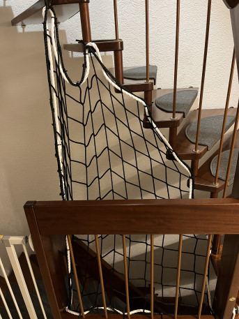 We used the two nets to make our open stairs safe for our grandchild, who is now starting to climb the stairs alone.