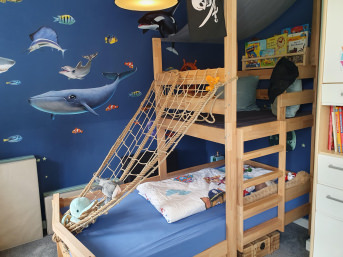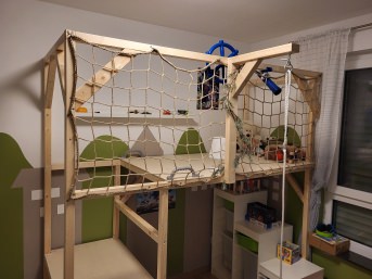 Fall protection for a loft bed in a child's room. Fits perfectly, everything is perfect. And somehow reassuring... translated, original text: "Fallsicherung für Hochbett im Kinderzimmer. Passt perfekt, alles bestens. Und irgendwie beruhigend..."
