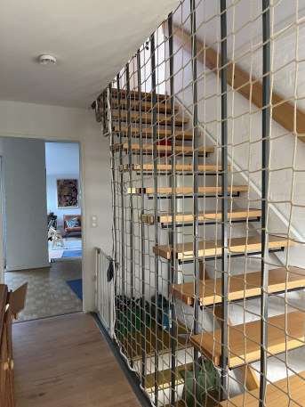 The nets were delivered to exact measurements and fit perfectly. Installing them was easy and was completed in a short time. The safety nets seem very stable and we now finally have a safe stairwell. translated, original text: "Die Netze wurden massgenau geliefert und haben optimal gepasst. Das Anbringen war problemlos und war in kurzer Zeit erledigt. Die Schutznetze wirken sehr stabil und wir haben jetzt endlich ein sicheres Treppenhaus."