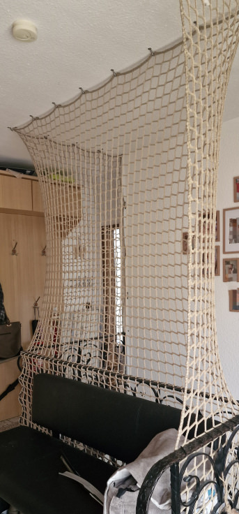 Our railing is made of iron and only has crossbars. But these are so far apart that a child could fit through them and there is a possibility that one of my boys could fall from above into the basement. Now we have installed the net and everything is safe. I can finally sleep at night again. The net is just perfect! Thank you very much. translated, original text: "Unser Geländer ist aus Eisen und hat an sich nur Querstangen. Diese sind aber so weit auseinander, dass ein Kind dort durchpassen würde und die Möglichkeit bestünde, dass einer meiner Jungs von oben bis in den Keller fallen könnte. Jetzt haben wir das Netz angebracht und nun ist alles sicher. Ich kann endlich wieder Nachts schlafen. Das Netz ist einfach perfekt! Vielen Dank."