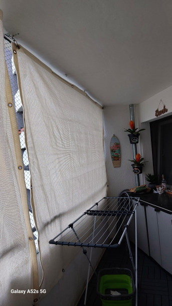 We live on the 6th floor and in winter it is more pleasant for smokers on the balcony.... translated, original text: "Dient als Schutz von Wind und Regen und blicken der Nachbarschaft